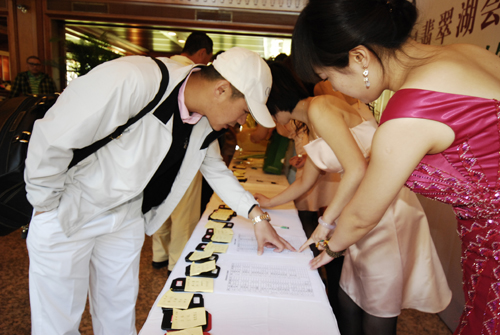 会员签到 前台接待员与会员李旭合影 “一杆进洞”大奖 价值75万元的美国GMC房车 开球仪式 球会副总刘艳在开球仪式上讲话 “全家福”合影 出发啦! 打球愉快! 向前进! 等待大家凯旋归来吧 会员朋友们在球场上的风采 精彩瞬间 球场上的风采 沙池救球成功 攻果岭 一道多么亮丽的风景啊 志同道合的伙伴 “并肩作战” 颁奖仪式上员工表演(会员部赵彭岩) 颁奖仪式上员工表演助兴(运作部主管夏舟表演瑜伽) 球会总经理蒋总(右)为获奖会员颁奖 总杆冠军获得者赵志鹏(左) 净杆冠军获得者关雄(左) 净杆季军获得者张纪明(左) 幸运抽奖由赞助商Pro Simon提供的高尔夫袖套 瑞士瑞唯乐乳清饮料负责人(左三)为幸运抽奖获奖者颁奖